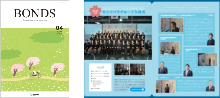 グループ報が2か月に1度発行されており、経営方針の発表、新卒・中途社員の紹介、グループ各社の新たな取り組み、社員の趣味紹介などカシワバラグループの最新情報が共有されます。